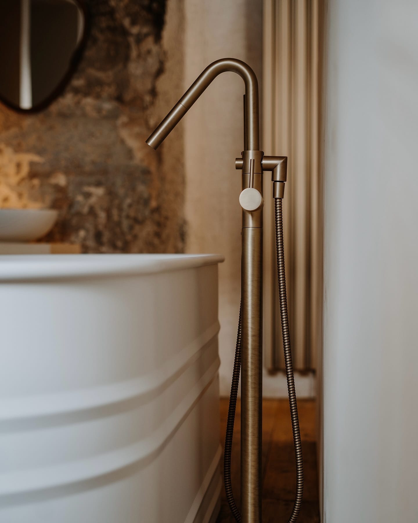Le cinque camere, tutte diverse, sembrano avere una personalità propria, come se la casa avesse deciso di raccontarsi in capitoli. I letti in cirmolo, che già da soli basterebbero a migliorare l’umore, convivono con arredi scelti con cura e opere d’arte che non stanno lì per riempire, ma per dialogare. E poi quei bagni con vasche freestanding che, diciamocelo, attivano immediatamente una versione di noi molto più contemplativa e molto meno di fretta.