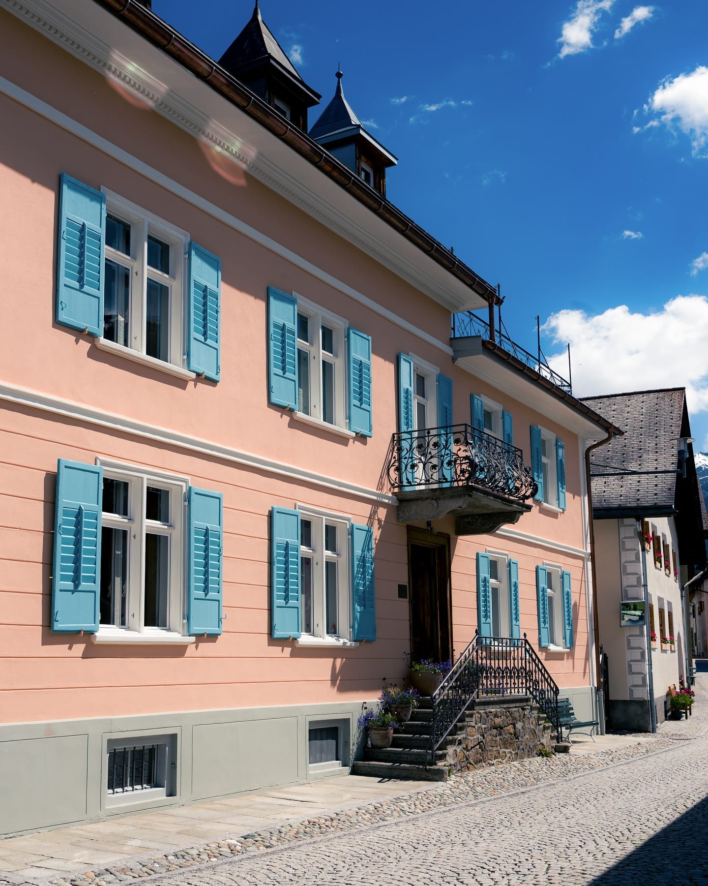 Ci sono luoghi che non si scelgono per caso, ma perché a un certo punto si ha bisogno esattamente di quell’atmosfera lì. Villa Flor è uno di questi. Arrivi a S-chanf, ai confini del Parco Nazionale Svizzero e quasi senza accorgertene rallenti. L’aria è più sottile, la luce più pulita,e questa villa un po’ nascosta sembra aspettarti con discrezione, senza fare troppo rumore.