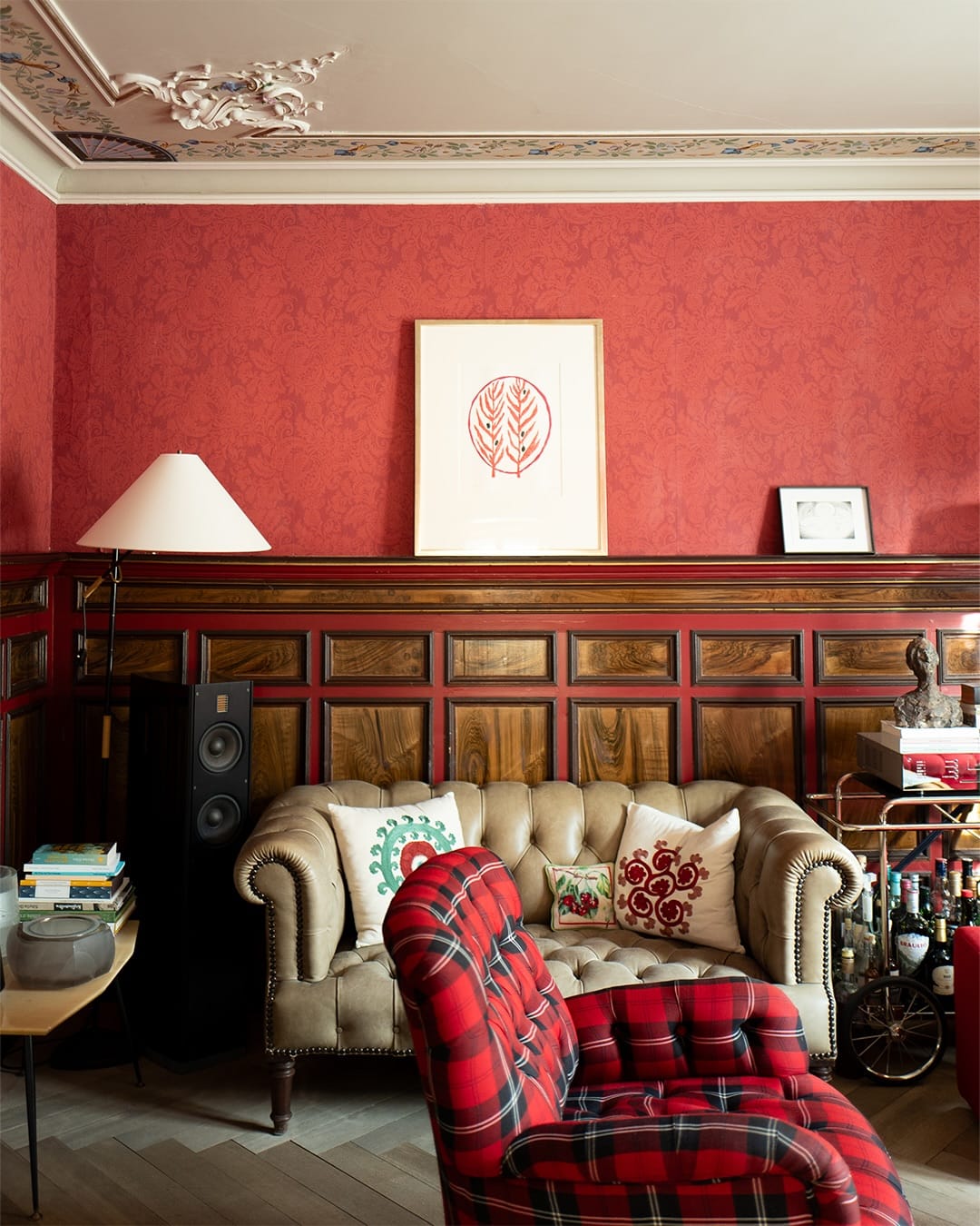 La storia della casa si intreccia con quella della famiglia Cloetta, che all’inizio del Novecento torna qui dopo aver fatto fortuna a Parma e costruisce questa villa liberty elegante e luminosa che ancora oggi si respira quel passato, ma senza nostalgia. Gli affreschi originali, restaurati con grande cura, convivono con dettagli più contemporanei, in un equilibrio naturale, mai forzato. È una bellezza che non ha bisogno di spiegarsi.